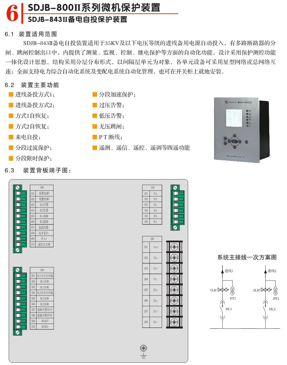 SDJB-843II備電自投保護(hù)裝置
