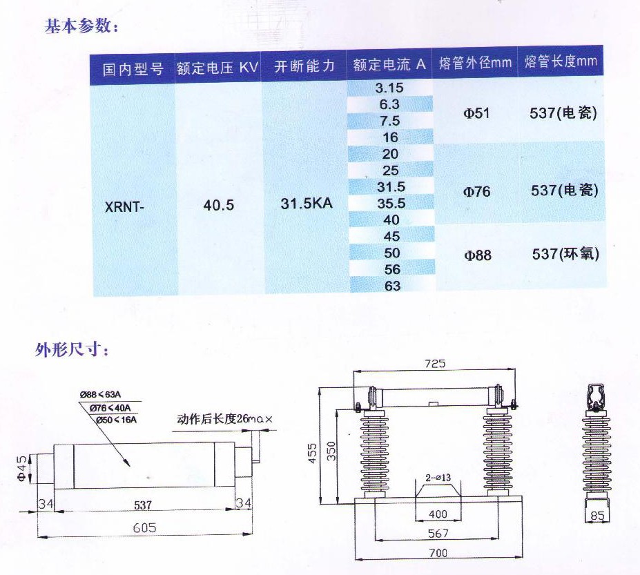 XRNT-40.5KV-變壓器保護(hù)用高壓限流熔斷器
